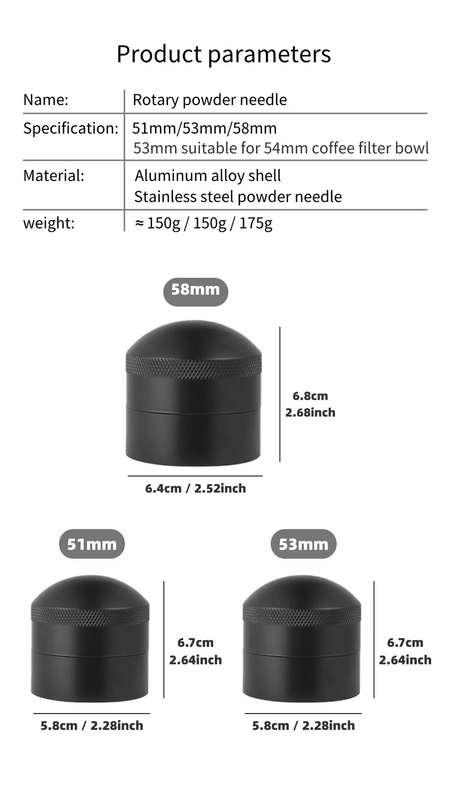• Up to 28 Needles Espresso Stirrer :The 28 needle espresso stirrer ensures even distribution of coffee grounds for a perfect espresso shot every time. (51mm and 53mm 28 Needles, 58mm 28 Needles)